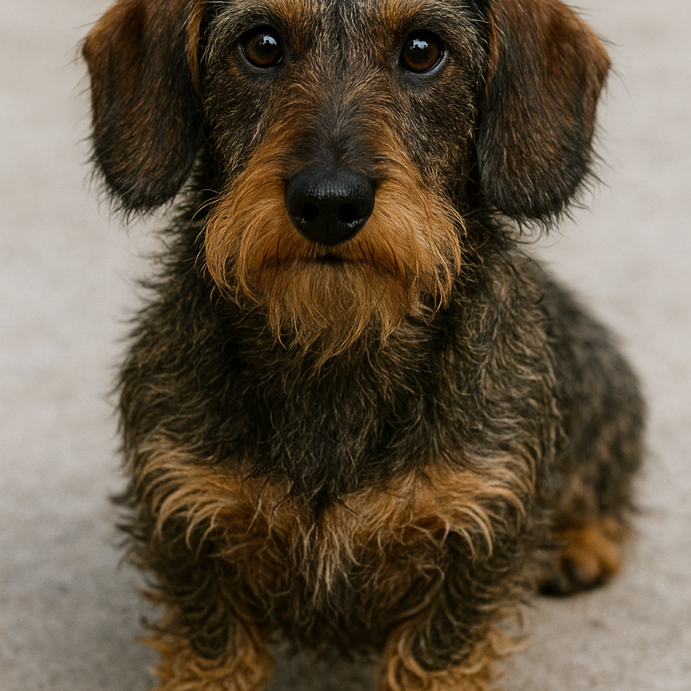 Der Rauhaardackel hat – wie alle Dackel – einen langen Körper und kurze Beine, was ihm ein charakteristisches und charmantes Erscheinungsbild verleiht. Sein robustes, drahtiges Fell schützt ihn vor Witterungseinflüssen und verleiht ihm ein unverwechselbares Aussehen. Diese Hunderasse zeichnet sich durch ihre aufgeweckte und lebendige Art aus, und trotz ihrer kompakten Größe sind sie äußerst mutig und selbstbewusst. Mit ihren großen, ausdrucksvollen Augen und den hängenden Ohren sind Rauhaardackel nicht nur hübsch, sondern auch äußerst anhänglich und loyal gegenüber ihren Besitzern.